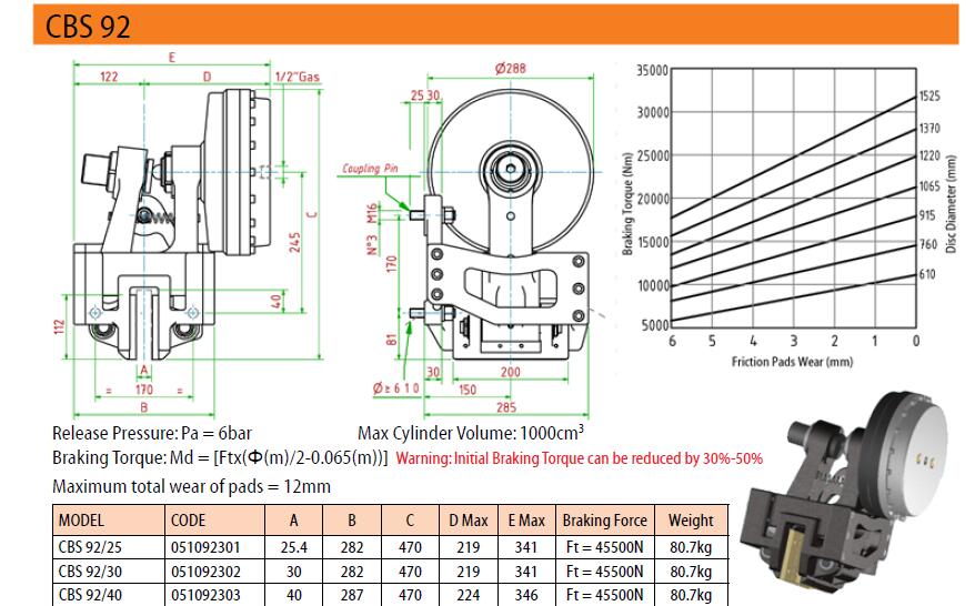 CBS92气动常闭制动器
